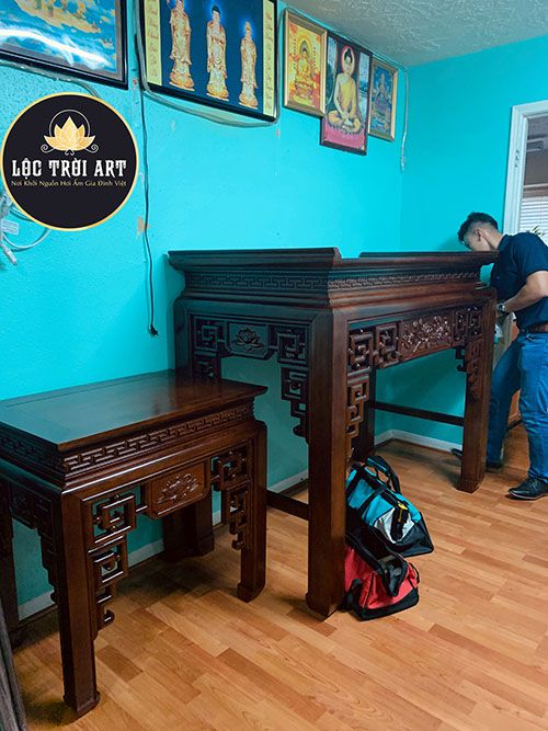 Lộc Trời Art có cơ duyên nói chuyện với gia đình cô Hằng đã lâu nhưng sau đó mất liên lạc do relocation. Sau này, bỗng nhiên cô nhắn tin fanpage nhờ tư vấn bàn thờ ông địa, và hẹn đến xem hàng thì bất ngờ gặp lại người quen, hihi. Cô chốt hai bàn thờ nhanh, gọn, giao hàng liền ngày hôm sau luôn.